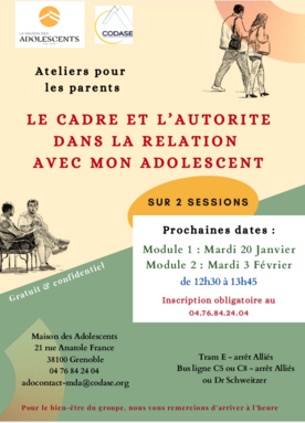 Maison des adolescents - nouvel atelier parents : Le cadre et l'autorité dans la relation avec mon adolescent - sur 2 dates